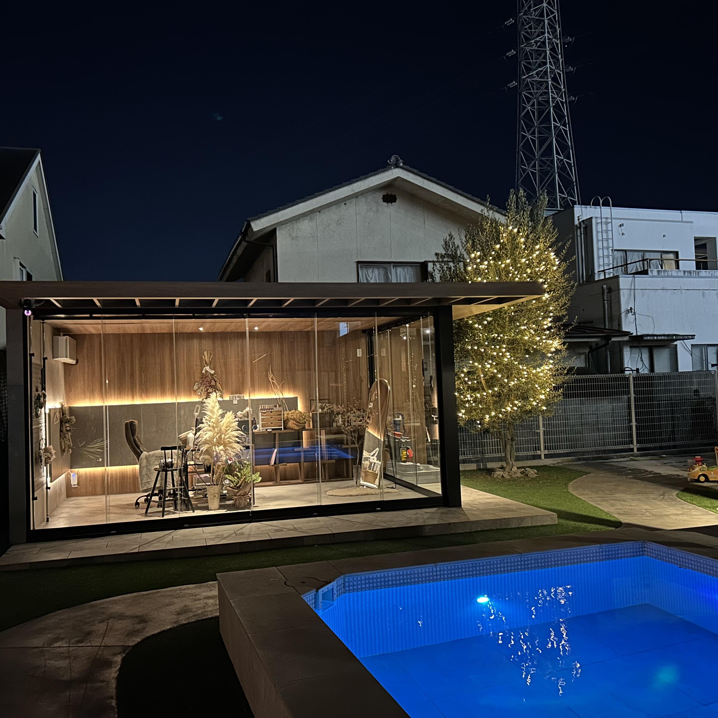 大きなガラス面によって開放感があり、昼とは違う時別な表情を楽しめる空間です。エクステリアやお庭の空間には「こんな空間にしたい」を教えてください。